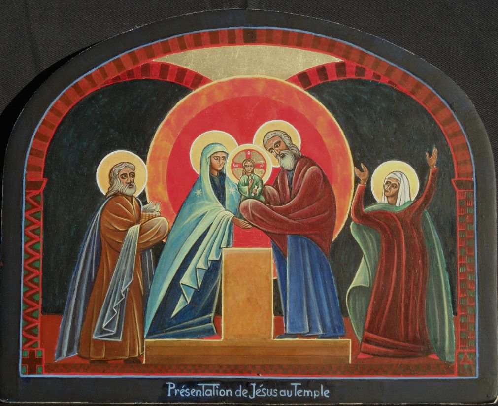 Quand fut accompli le temps prescrit par la loi de Moïse pour la purification, les parents de Jésus l’amenèrent à Jérusalem pour le présenter au Seigneur, selon ce qui est écrit dans la Loi : ‘Tout premier-né de sexe masculin sera consacré au Seigneur.’ Ils venaient aussi offrir le sacrifice prescrit par la loi du Seigneur : ‘un couple de tourterelles ou deux petites colombes.’ Or, il y avait à Jérusalem un homme appelé Syméon. C’était un homme juste et religieux, qui attendait la Consolation d’Israël, et l’Esprit Saint était sur lui. Il avait reçu de l’Esprit Saint l’annonce qu’il ne verrait pas la mort avant d’avoir vu le Christ, le Messie du Seigneur. Sous l’action de l’Esprit, Syméon vint au Temple. Au moment où les parents présentaient l’enfant Jésus pour se conformer au rite de la Loi qui le concernait, Syméon reçut l’enfant dans ses bras, et il bénit Dieu en disant : « Maintenant, ô Maître souverain, tu peux laisser ton serviteur s’en aller en paix, selon ta parole. Car mes yeux ont vu le salut que tu préparais à la face des peuples : lumière qui se révèle aux nations et donne gloire à ton peuple Israël. » Le père et la mère de l’enfant s’étonnaient de ce qui était dit de lui. Syméon les bénit, puis il dit à Marie sa mère : « Voici que cet enfant provoquera la chute et le relèvement de beaucoup en Israël. Il sera un signe de contradiction – et toi, ton âme sera traversée d’un glaive – : ainsi seront dévoilées les pensées qui viennent du cœur d’un grand nombre. » Il y avait aussi une femme prophète, Anne, fille de Phanuel, de la tribu d’Aser. Elle était très avancée en âge ; après sept ans de mariage, demeurée veuve, elle était arrivée à l’âge de quatre-vingt-quatre ans. Elle ne s’éloignait pas du Temple, servant Dieu jour et nuit dans le jeûne et la prière. Survenant à cette heure même, elle proclamait les louanges de Dieu et parlait de l’enfant à tous ceux qui attendaient la délivrance de Jérusalem. Lorsqu’ils eurent achevé tout ce que prescrivait la loi du Seigneur, ils retournèrent en Galilée, dans leur ville de Nazareth. L’enfant, lui, grandissait et se fortifiait, rempli de sagesse, et la grâce de Dieu était sur lui.